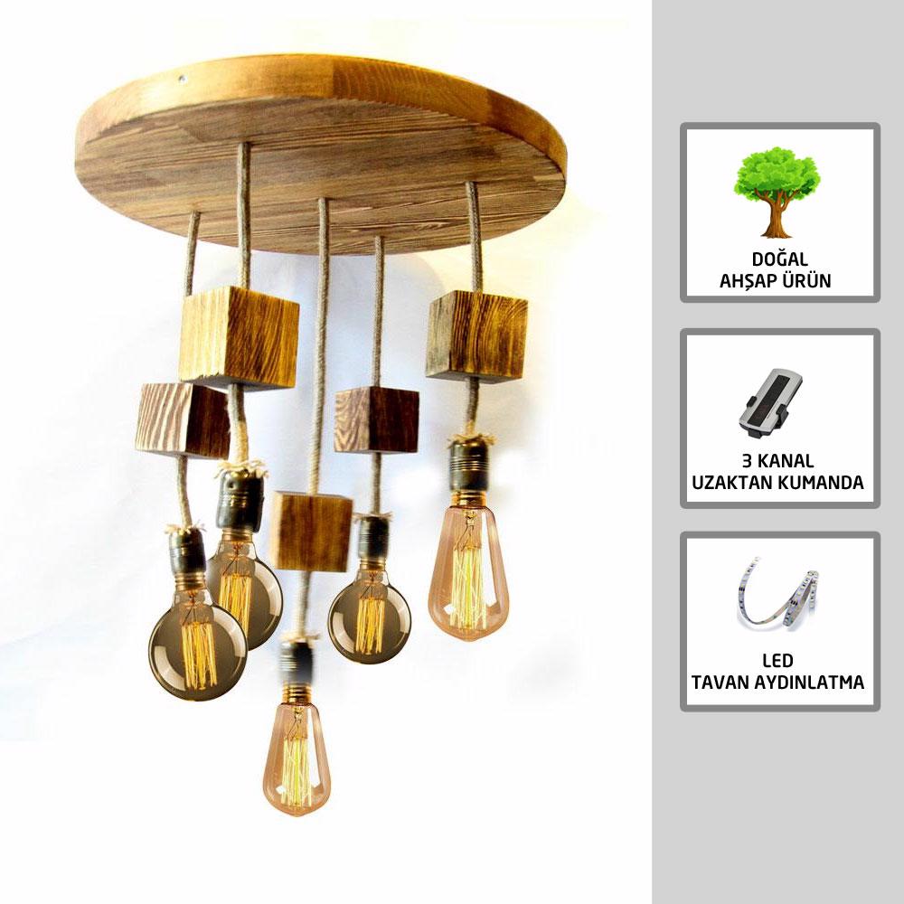 16995 - SZN Wood Avize Circle Çam Eskitme SZN-51 5 Duylu 50x50x4cm