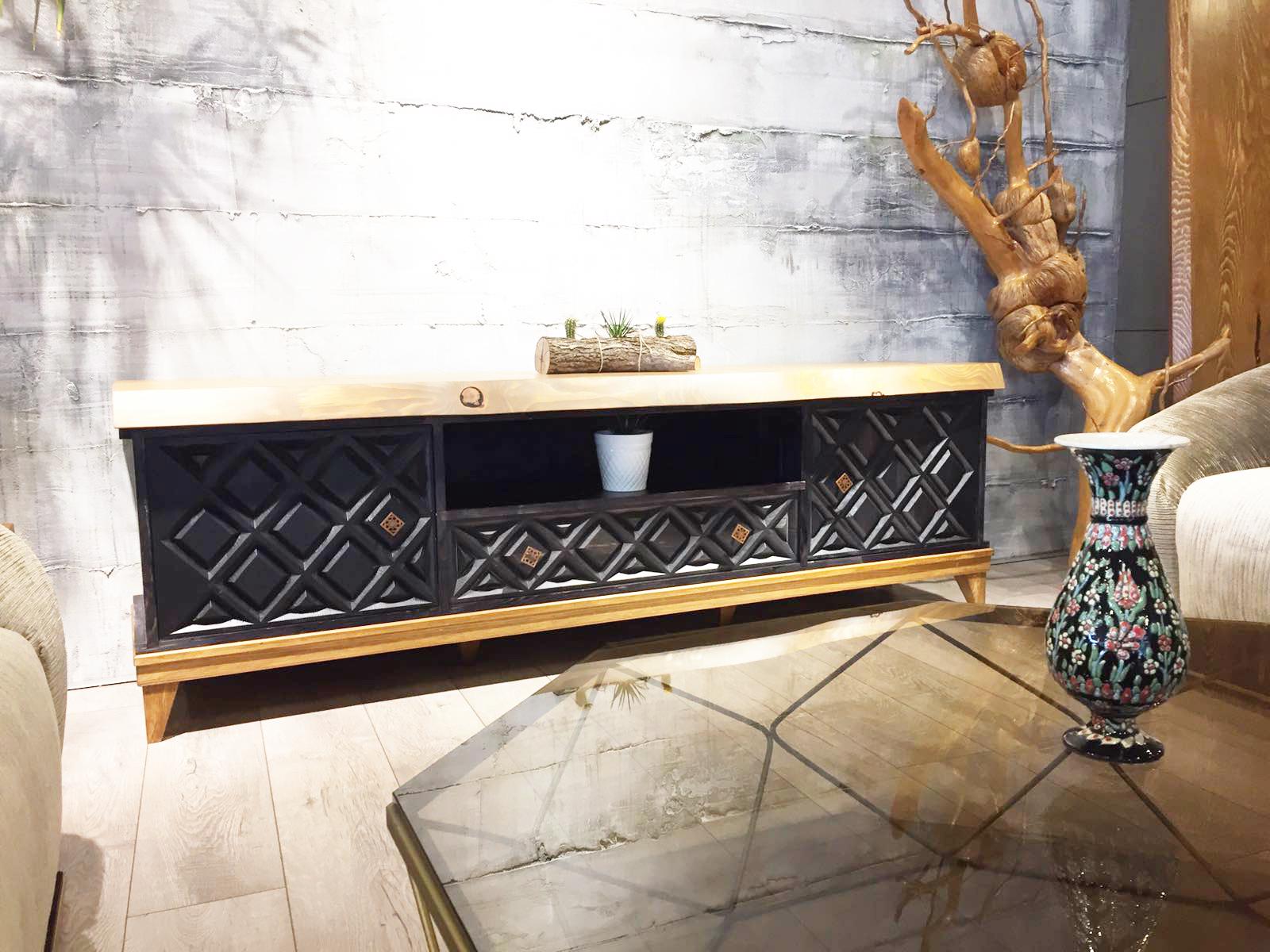 SZN Wood Tv Ünitesi Furniya Ladin Çam Panel Kod-12_Siyah 200 x 45 x 60 cm Kübik Kapak