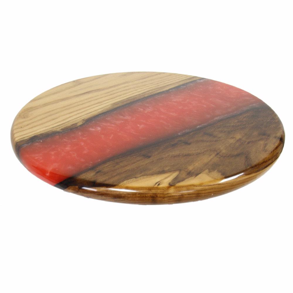 SZN Wood Kütük Sehpa Kestane Düz Yuvarlak Epoksili 40 x 40 x 2,5 cm