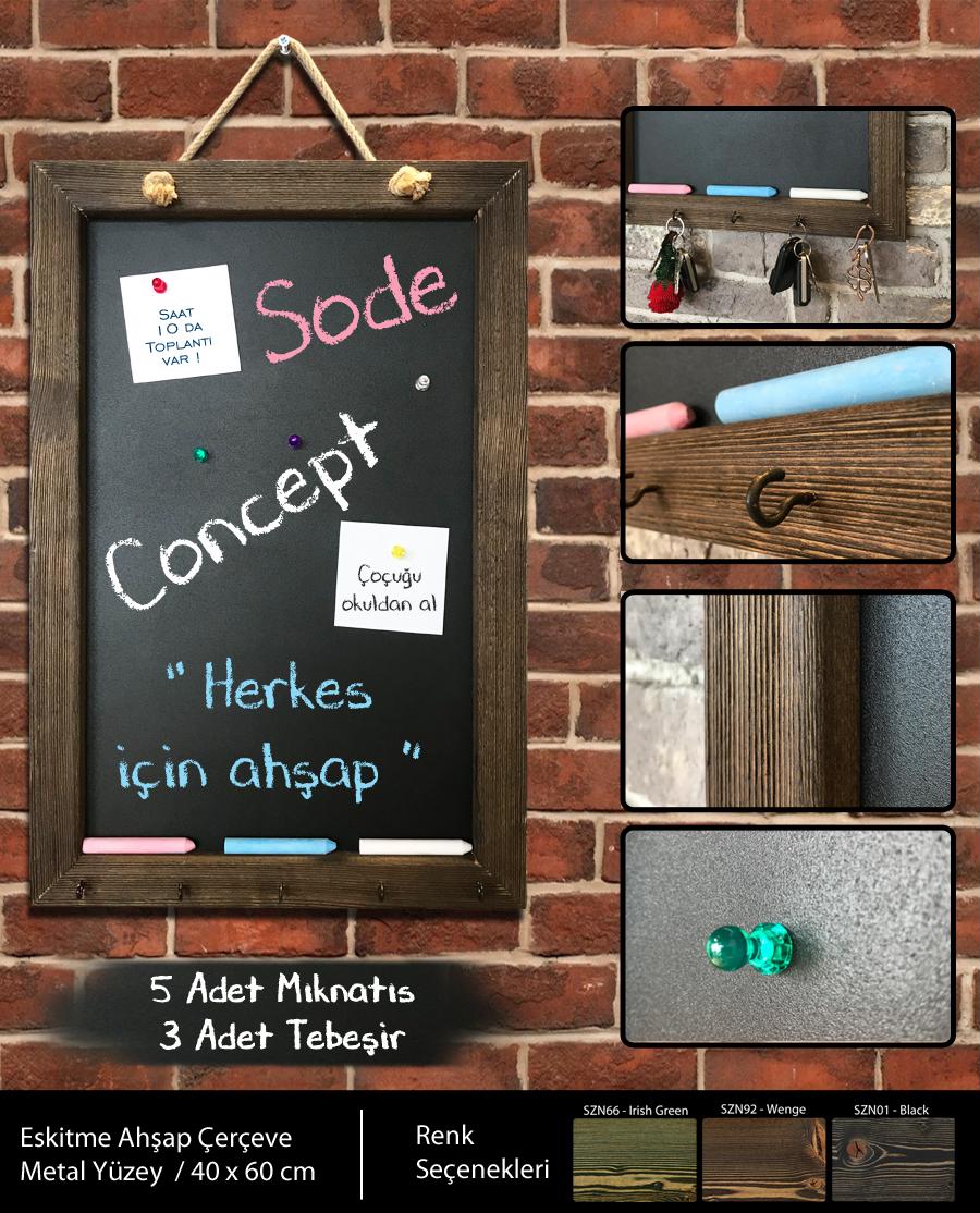 SODE Ozmo Çok Amaçlı Ahşap Yazı Tahtası Ladin Eskitme 40x60x2cm SZN-66-Irish Green