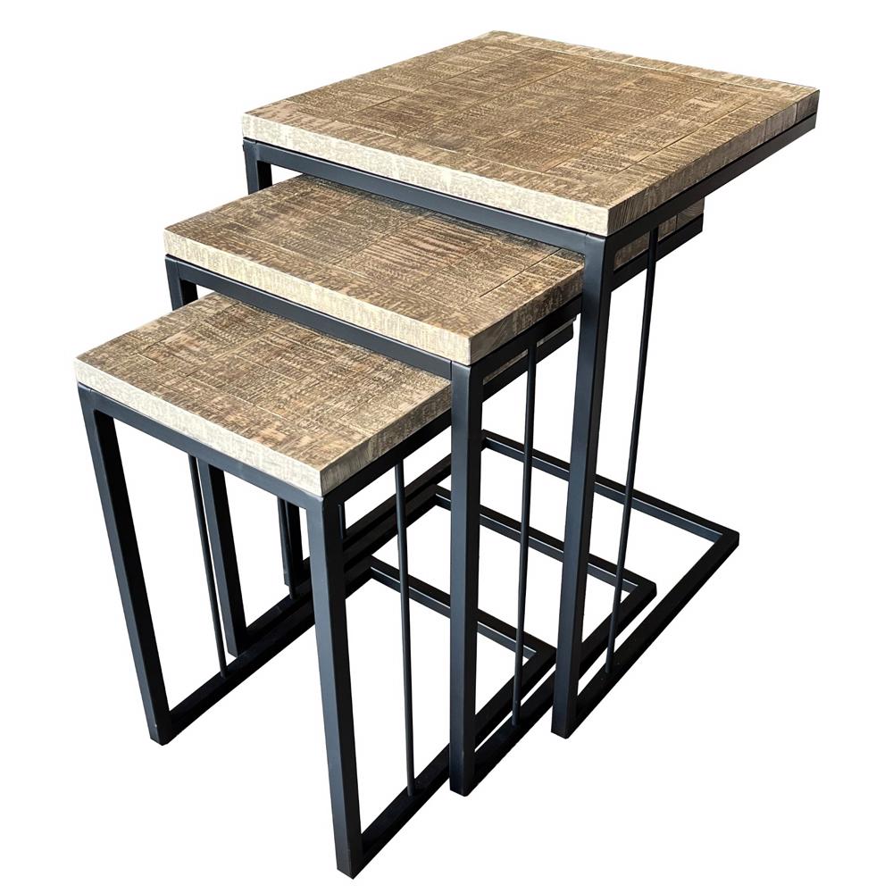 SZN Wood Zigon Sehpa Ganita Siyah Testere İzli Ladin Patina - Üçlü 44 x 44 x 63 cm