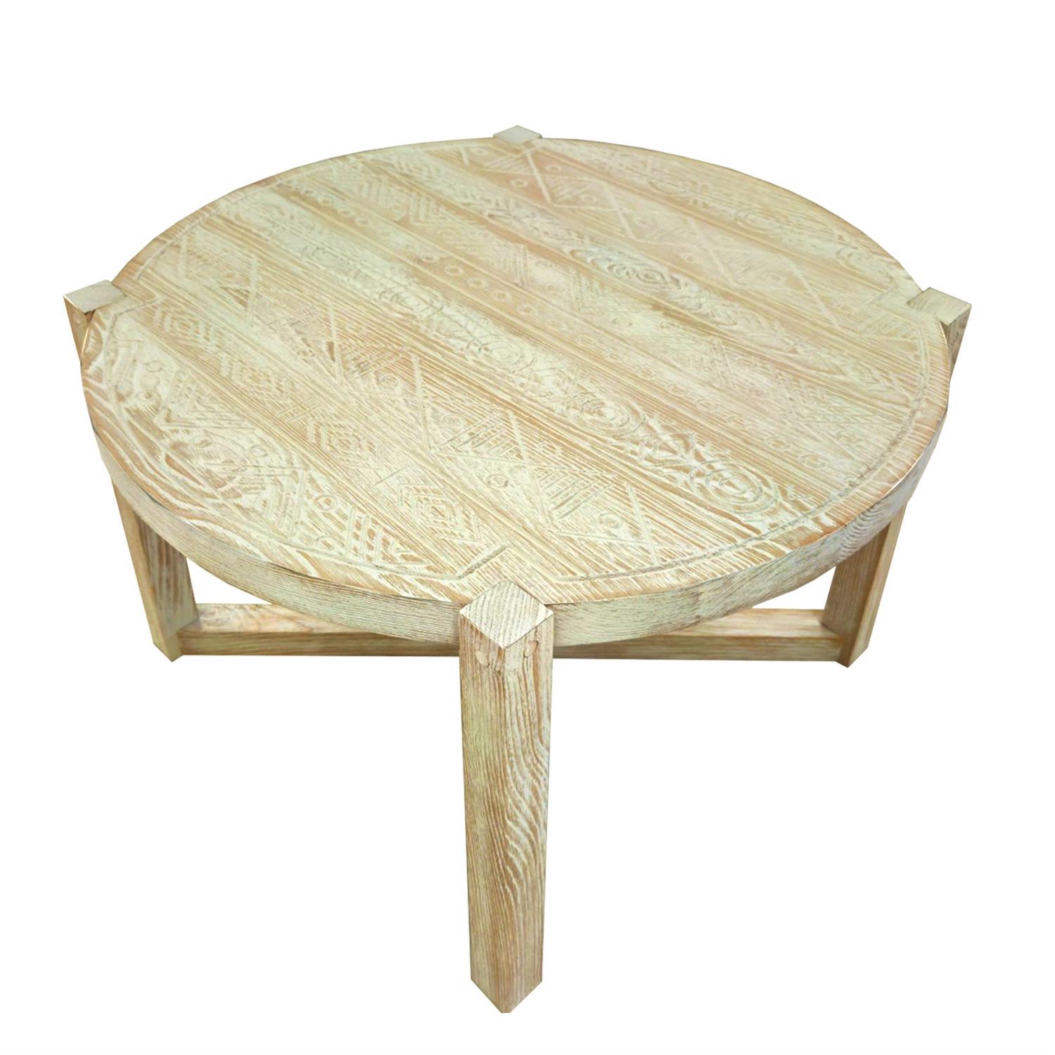 SZN Wood Orta Sehpa Jovi -- Oyma Eskitme Kestane Beyaz Patina - -- 60 x 60 x 40 cm