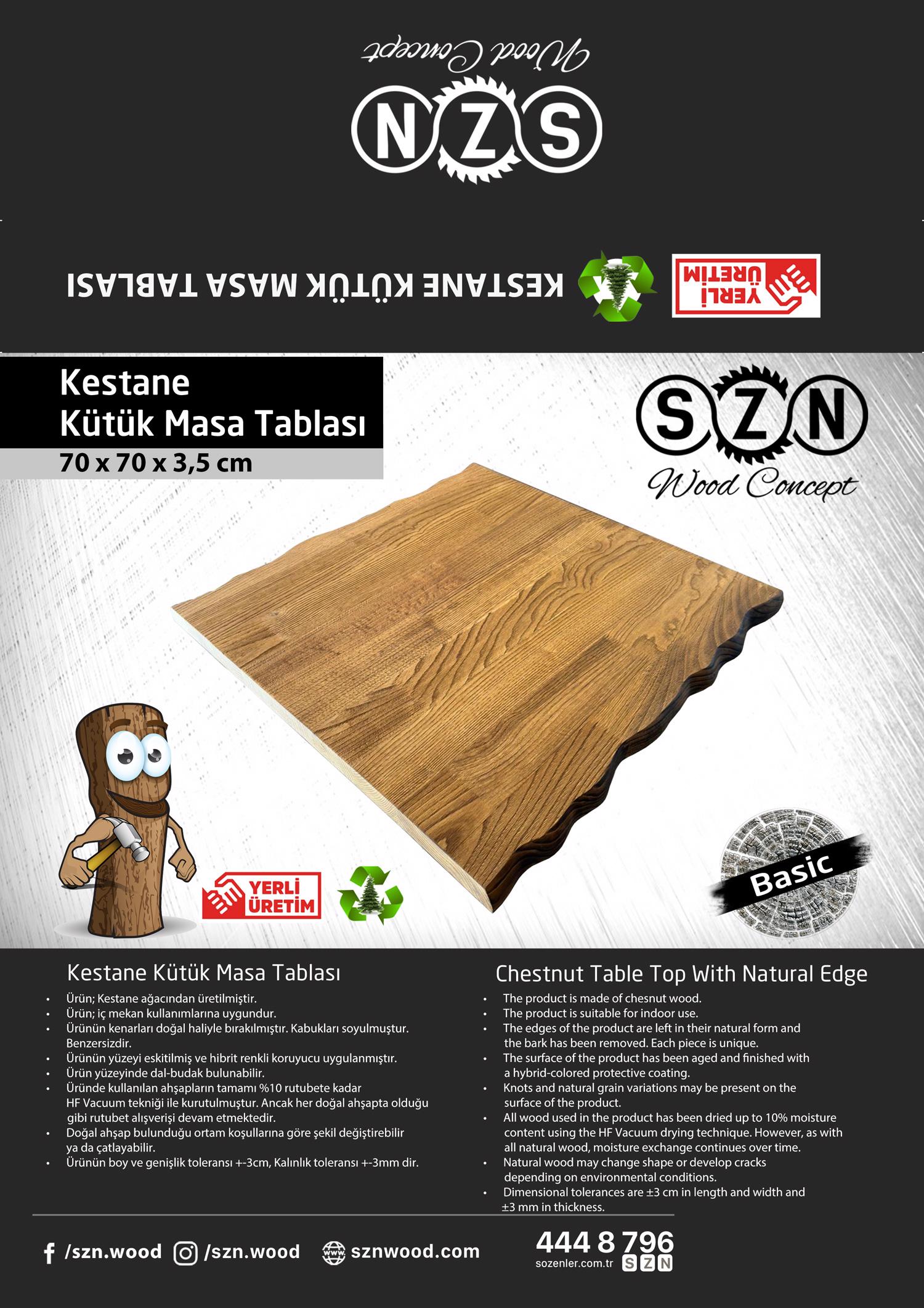SZN Wood Basic Kestane Eskitme Ekli 2 Kenar Sulama 8559-29 -- -- -- 70 x 70 x 3,5 cm